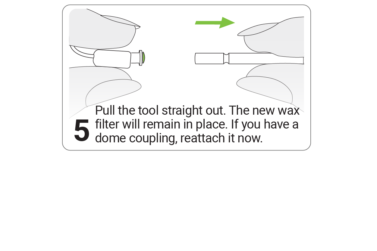 If your hearing care professional has informed you that your hearing aid is equipped with a dome (steps 1-5) or SlimTip/c-shell (steps 2-5), please follow the instructions below for proper filter maintenance.