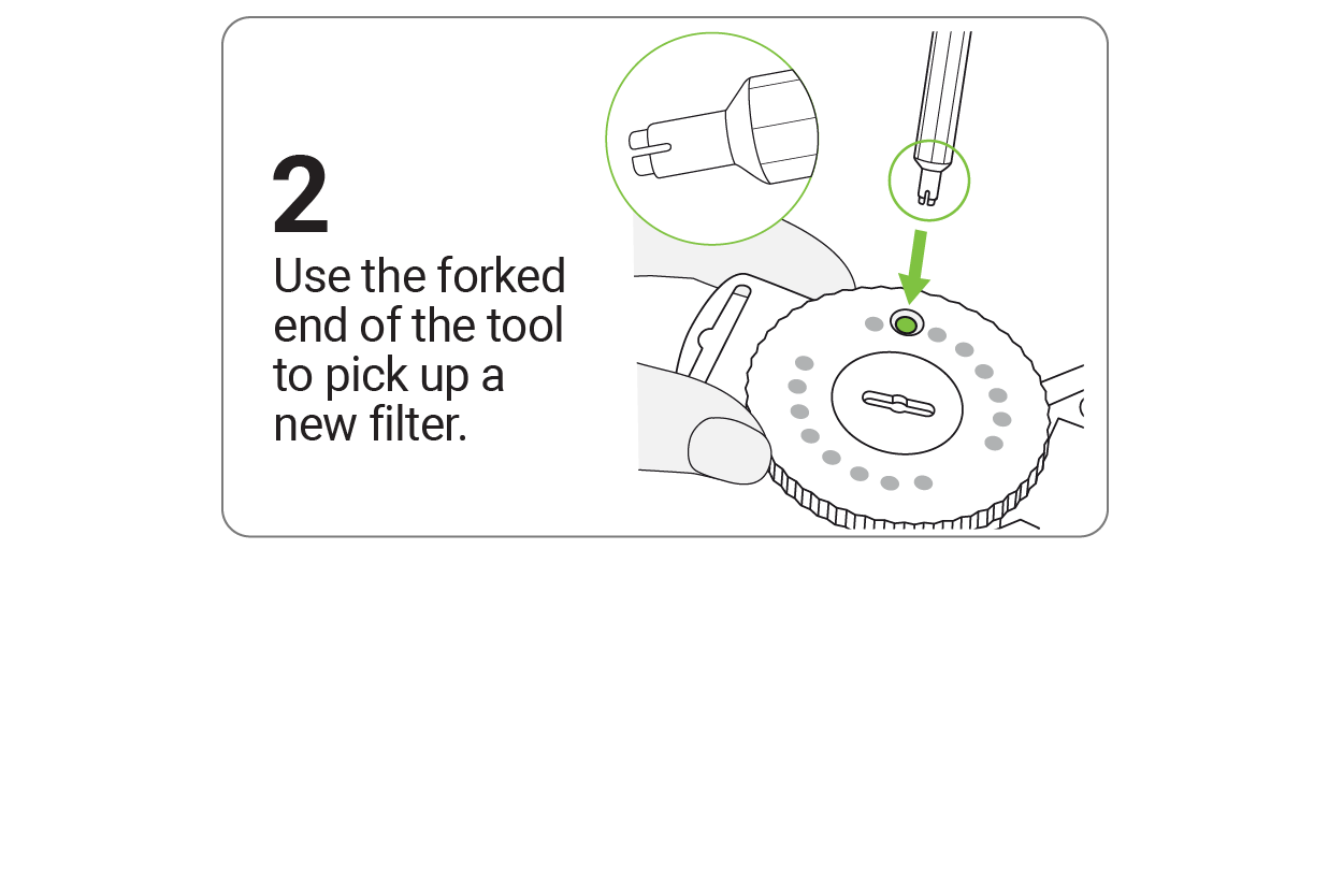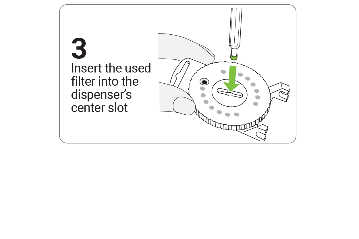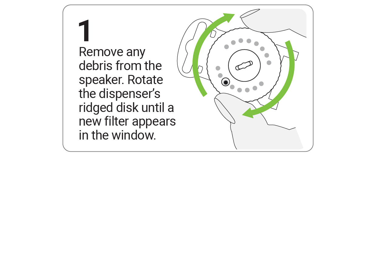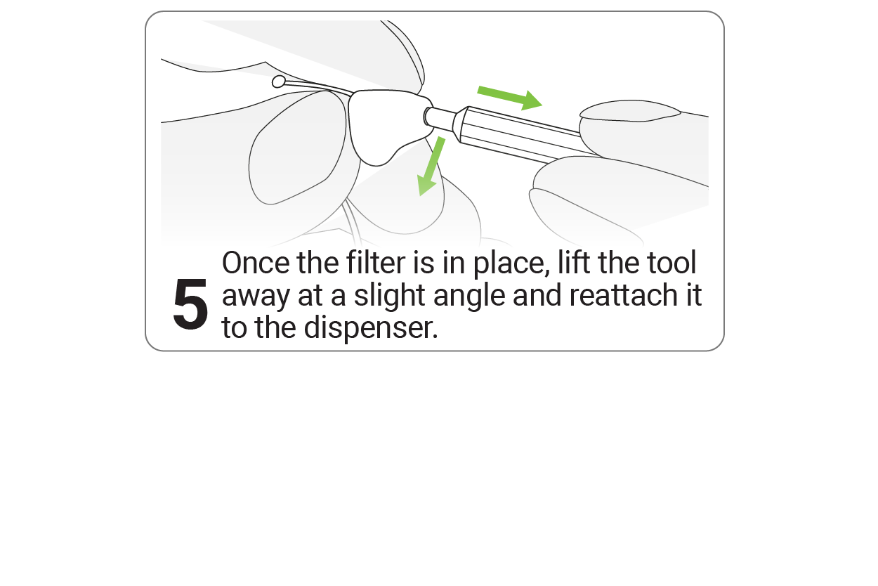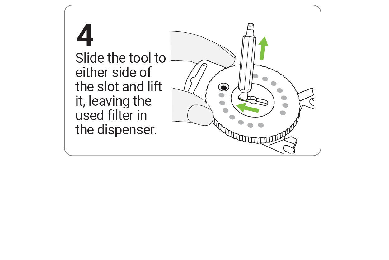 Remove the old and insert a new wax filter using the HF3/HF4 Filter Dial.